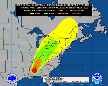 Katrina being the monster she is, causes me concern for her future travels through people and places that are not as accustomed to hurricane personality as our Gulf, eastern seaboard and southeastern USA members may be. It looks like she is going to visit many of our members in one fashion or the other.