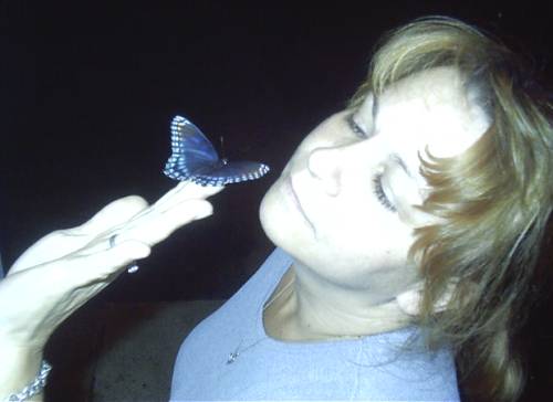Isabel is coming so we battened down the hatches late last night...removed all the lawn ornament projectiles, etc...stood back on the patio to look around one last time...she flew at me from the darkness and fell to the ground...I leaned down and touched her wings...she didn't fly away, but fluttered her wings as if I were petting her and she liked my attention...I braved the the fear of her flight and gently pushed my hand under her delicate legs and let he walk into my hand...I pleaded with my husband to run for the camera...he said her wings must be wet from the night dew and she came to the light to dry off...she liked when I held her up to the light...I could tell cause her wings would fan and fluff...