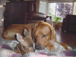 My sister sent me these pics in email the other day. The story said that the momma was killed by a car and a couple adopted the baby till it was strong enough to go to a better home. Seems "momma's" come in many forms.