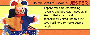 I spent my time entertaining royalty and boy was I good at it!!Alot of that charm and friendliness leaked into this life too. I still love to make people laugh!!