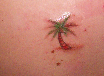I just went with my boyfriend and my mother to get a tattoo!(he got a new one last night-number 3, and my mom and I just went to get our first one, hers a rose, mine a palm tree) Take a look, it hurt pretty badly but it turned out great and I'm glad I did it!
