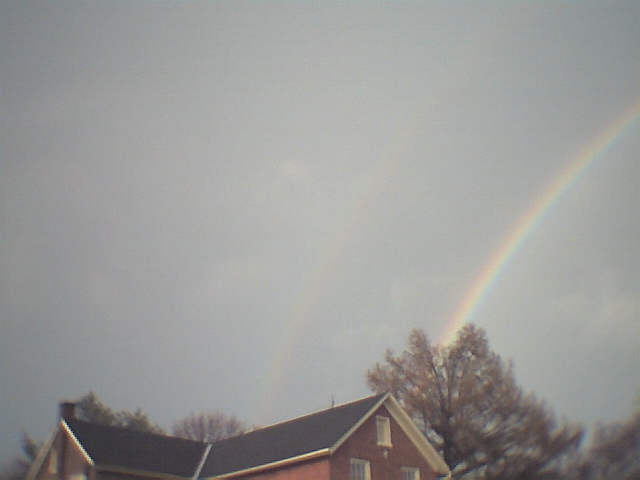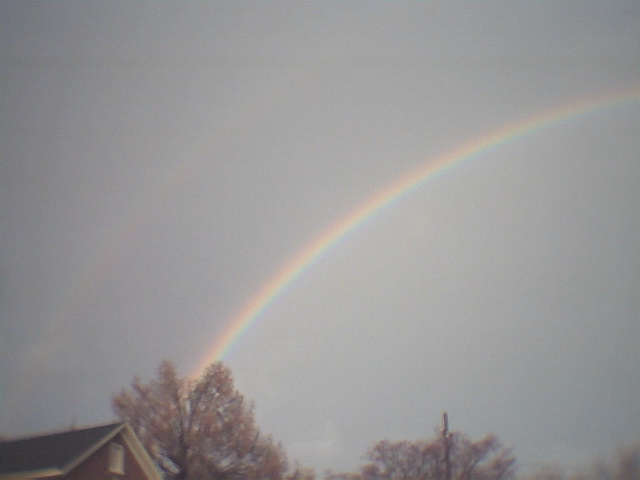 The First 2 look very good together. the first one is it coming out over my house. and the second is it connecting and going down over my neighbors. Then the rest are various pictures.. in a few you can actually see that there is more than one Rainbow.. =) What a day indeed