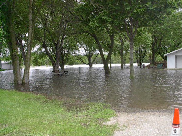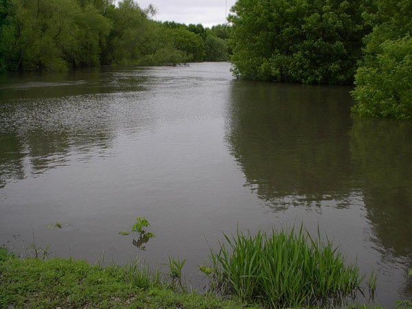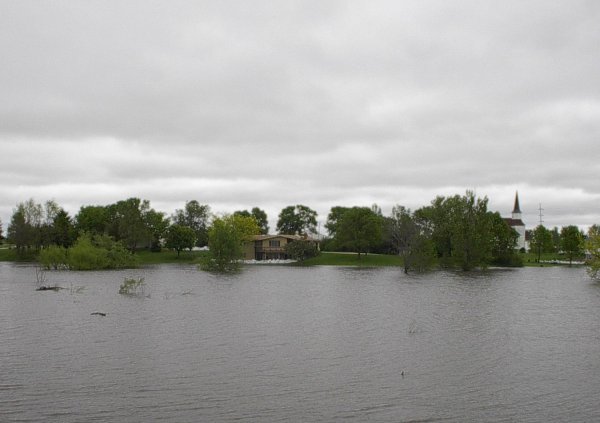 We drove around a baracade to get this picture. I didn't get out of the car, but it looks as if the river is going to spill over the edge of the bridge and onto the road...