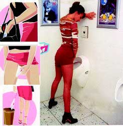 so this Chinese old retired lady designed this new toilet for you so you don't need to wait for any one. come in get a pee like a man and run like a man.