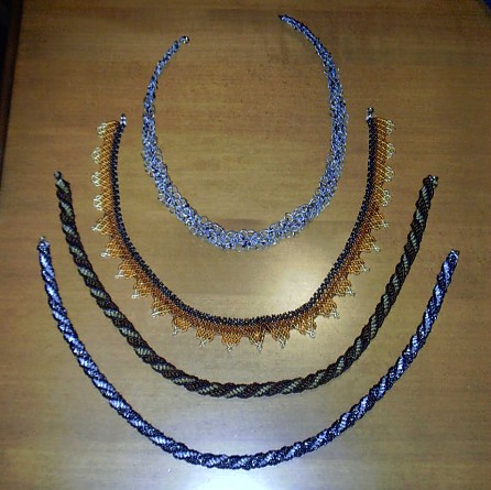 I love beads!!! I like any kinds of beads but I think my fave must be seed beads! In the photo I am attaching, there are a few of the necklaces I've made in the last year. The first is crocheted wire, the second is African net and the third and fourth are African helix (these last two are actually hollow tubes).
