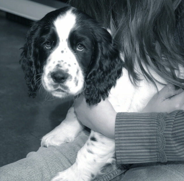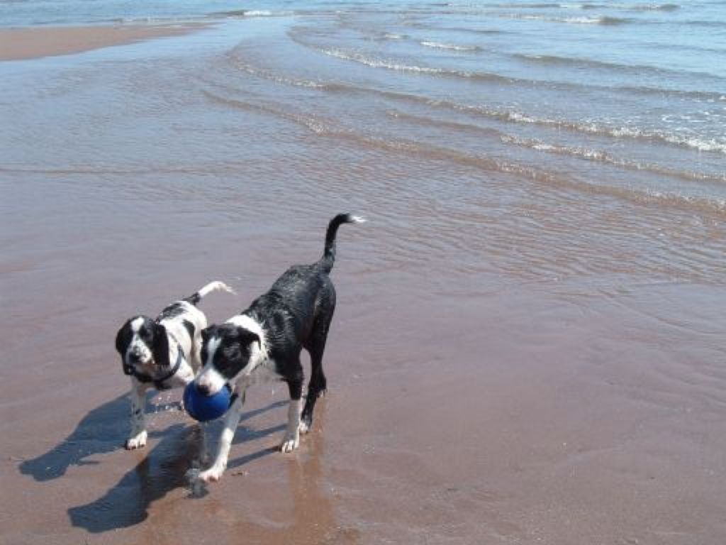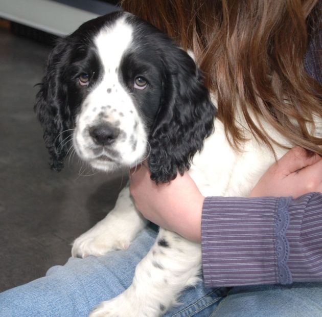 The wee one (Riley) is 1/4 Springer Spaniel and 3/4 Cocker Spaniel, known, apparently, as a 'Sprocker'!
