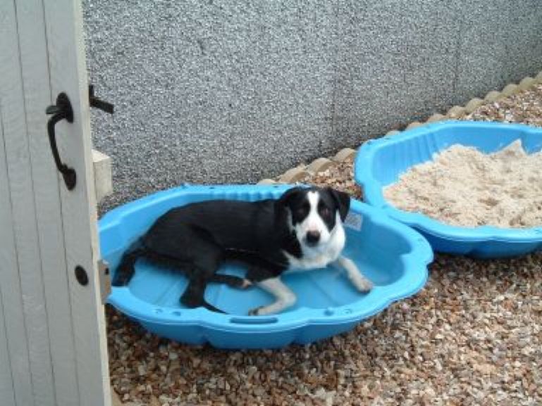 The big 'un (Bodie) is Border Collie crossed with a Huntaway. Huntaway's were bred in New Zealand to be cattle/sheep herders. Their claim to fame apparently is they do their jobs by barking......rather than just "being there" and maybe a wee nip[ here or there. Ho hum!