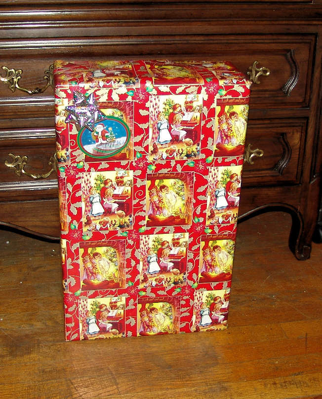 Put the completed assembly into a stout shipping carton complete with address label if available and wrap in gift paper. Just to add a tiny bit of confusion, turn it on end and stick on the gift tag to suggest upright orientation.