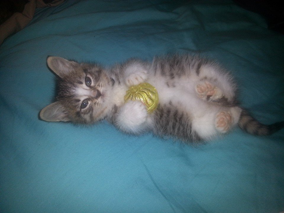 I know BIBI! And this one is SO damn little! His weight in his chart was listed as .75lbs...and since the vet says he's just now at 6.5 wks, that means he was only 4 wks old when we got him! He wasn't ready to be weaned yet! He was suckling in his sleep this morning, James says. He's still sleeping--being snuggled gently by his "daddy".