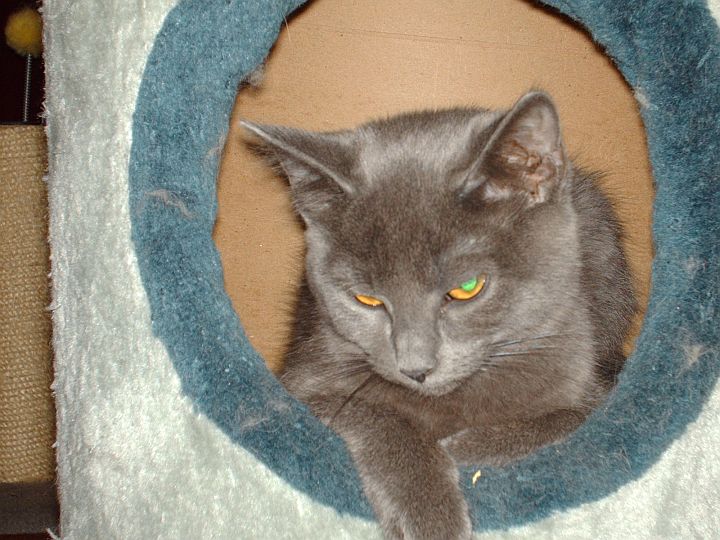 Anyway, I did keep one kitten from each litter. From the first litter I kept the little all gray one, Lil says she's a Russian Blue. Her name is Dominique.