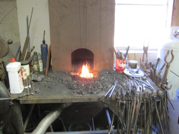 Pantyfanatic has been after me for a year now to start this thread,so we will see how it goes. For those that don't know me I've been blacksmithing for over 10 yrs making what some say are prettys ,and sharp and pointies..The first 2pics are where it all starts.