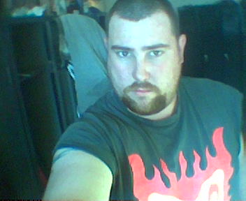 Okay, CGT, you asked for it...here is one with the shirt, well, it's not off but it is up, and I've grown a goatee.
